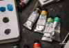 Most colours available in 38 ml and 100 ml except titanium-zinc white and neutral white, which are available in 118ml